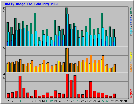 | Day | Hits | Files | Pages | Visits | Sites | KBytes | ||||||